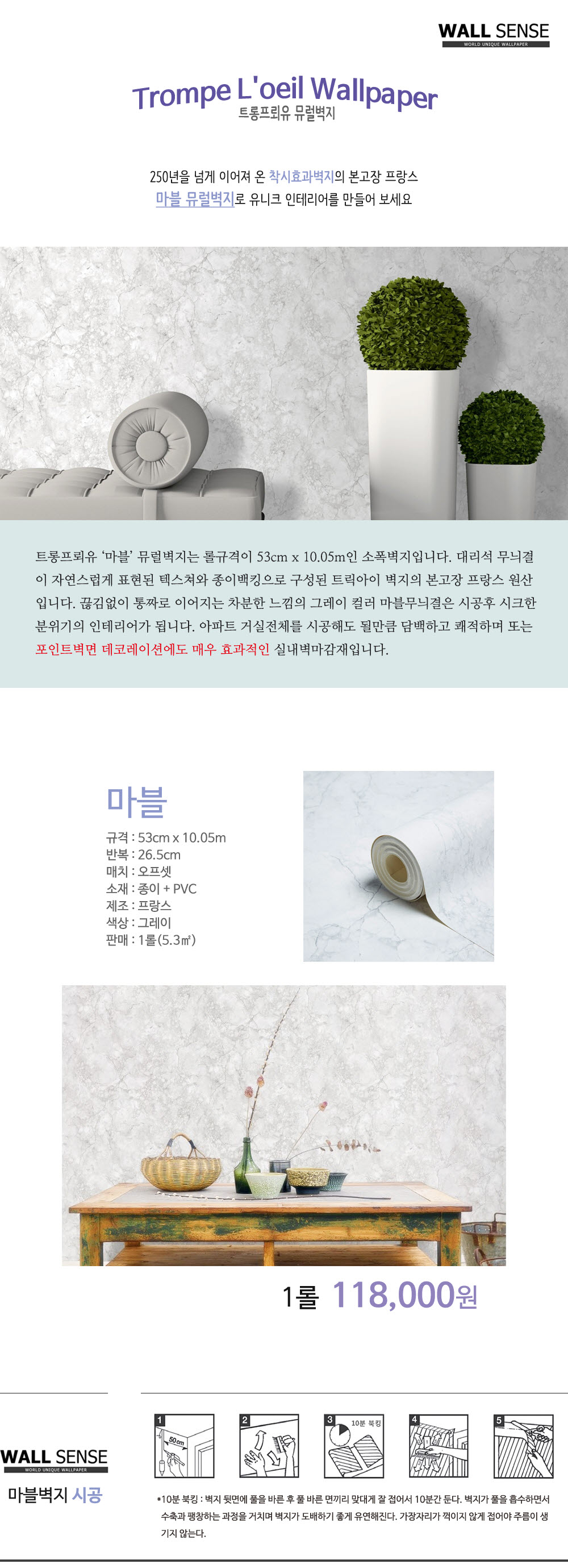 진짜 대리석이 아닙니다. 트롱프뢰유(착시기법) 뮤럴벽지 입니다.