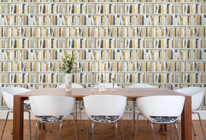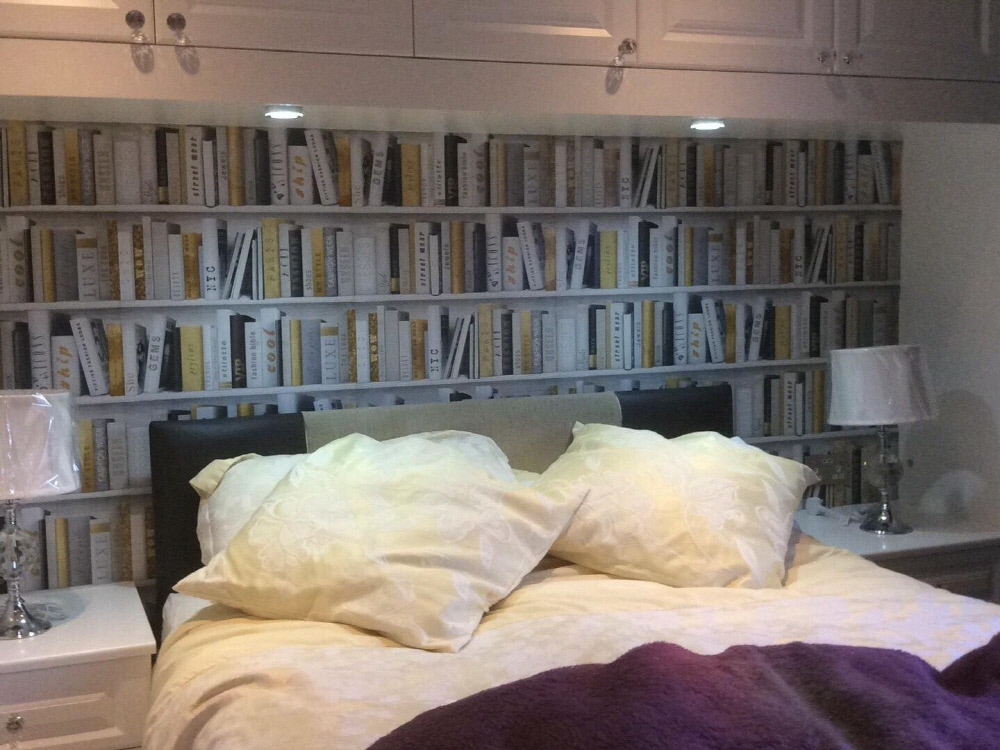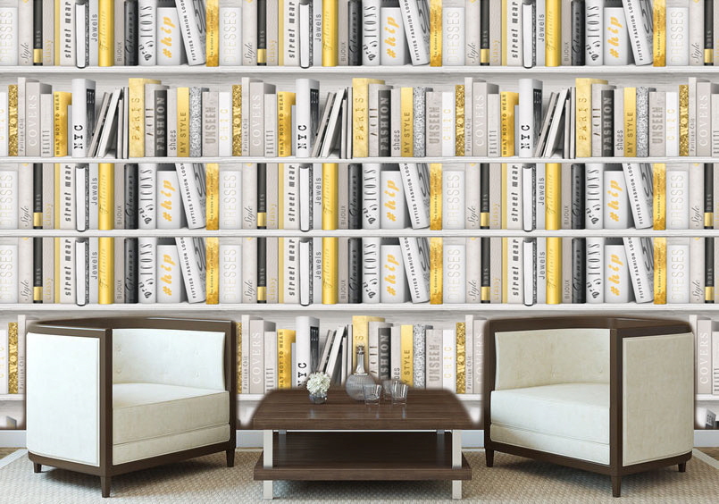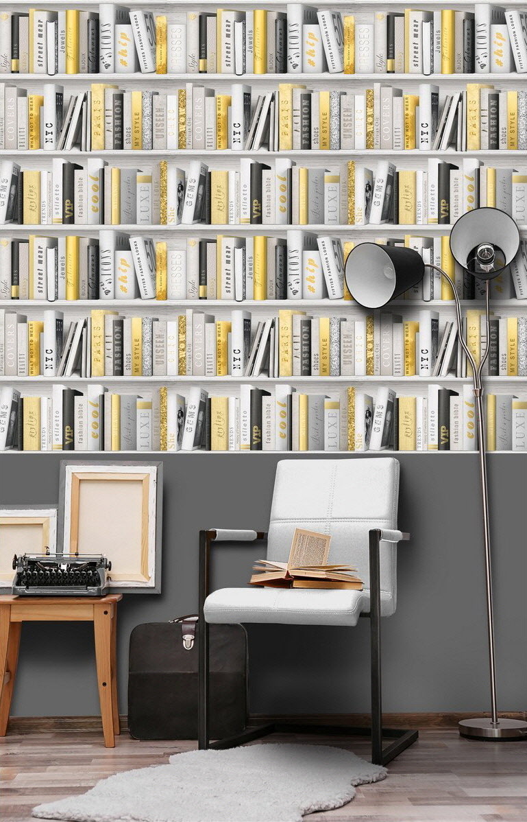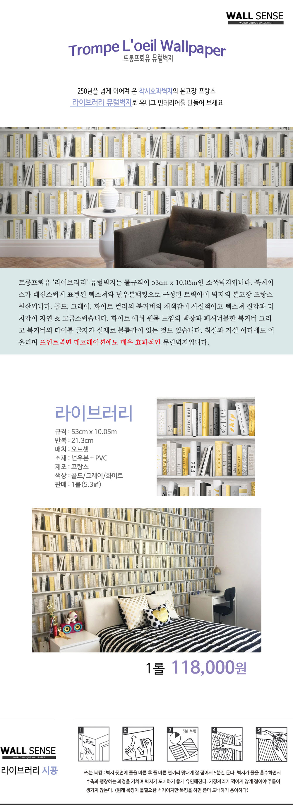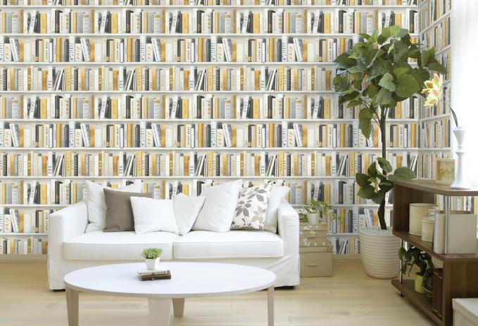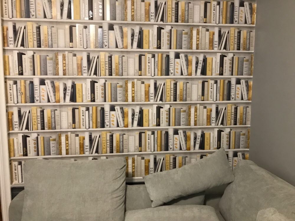 진짜 북케이스(책장)가 아닙니다. 트롱프뢰유(착시기법) 뮤럴벽지 입니다.