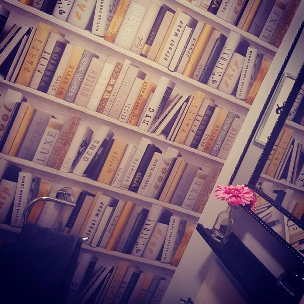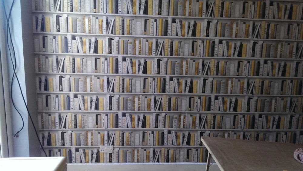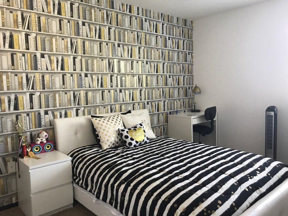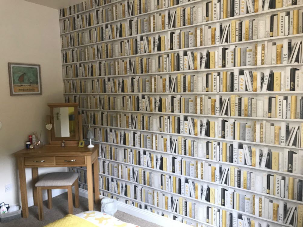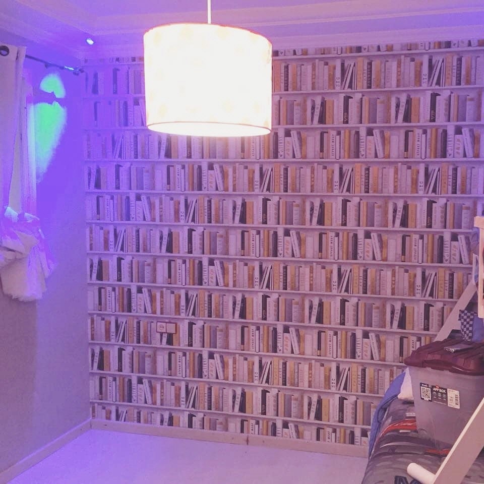 진짜 북케이스(책장)가 아닙니다. 트롱프뢰유(착시기법) 뮤럴벽지 입니다.
