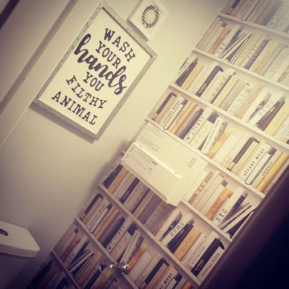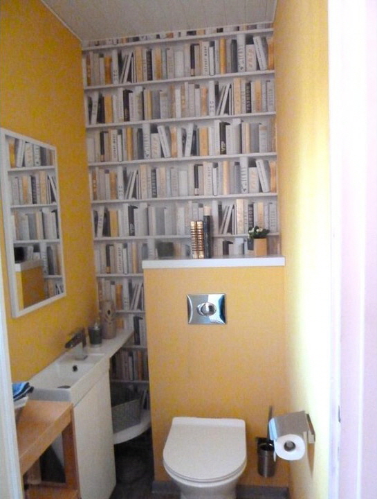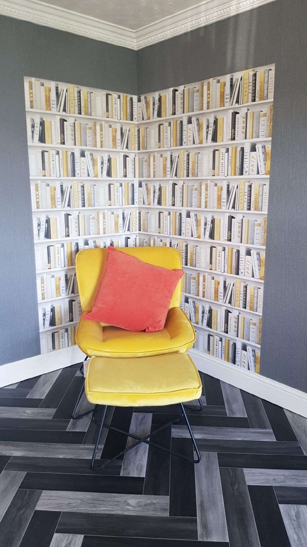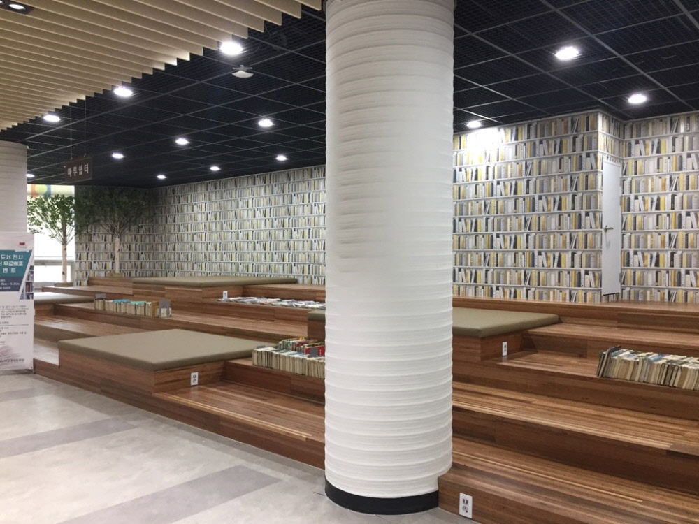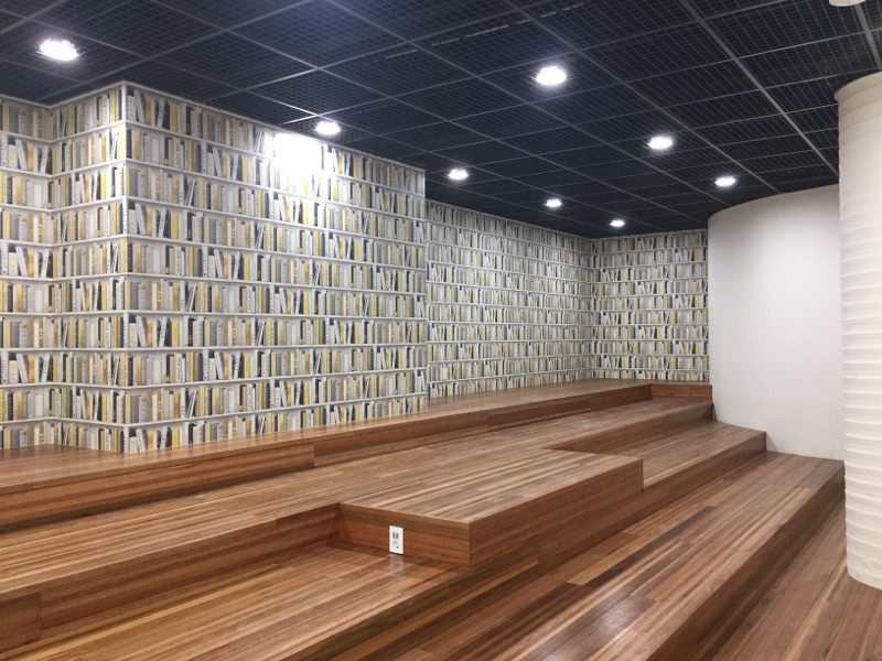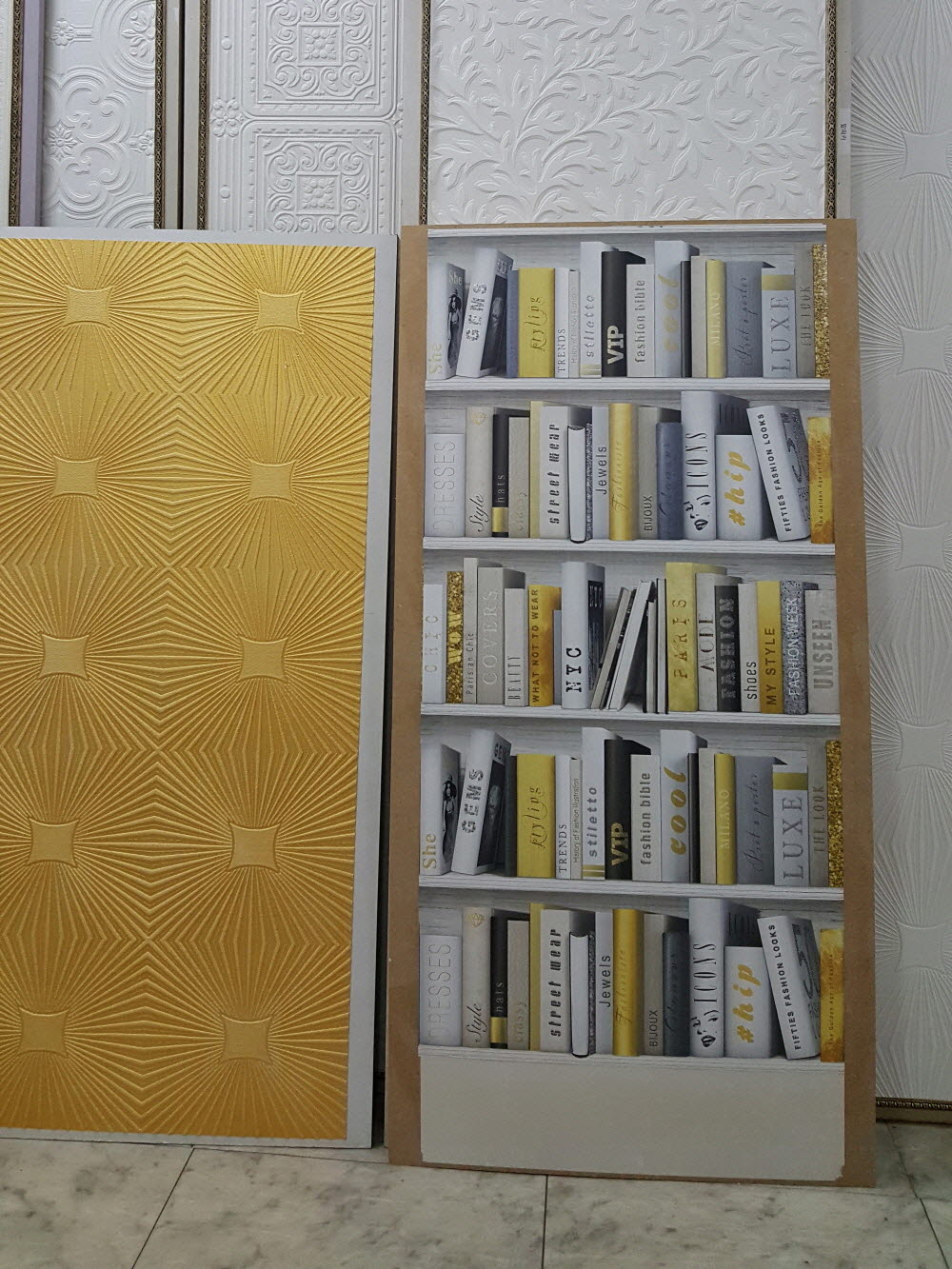 진짜 북케이스(책장)가 아닙니다. 트롱프뢰유(착시기법) 뮤럴벽지 입니다.