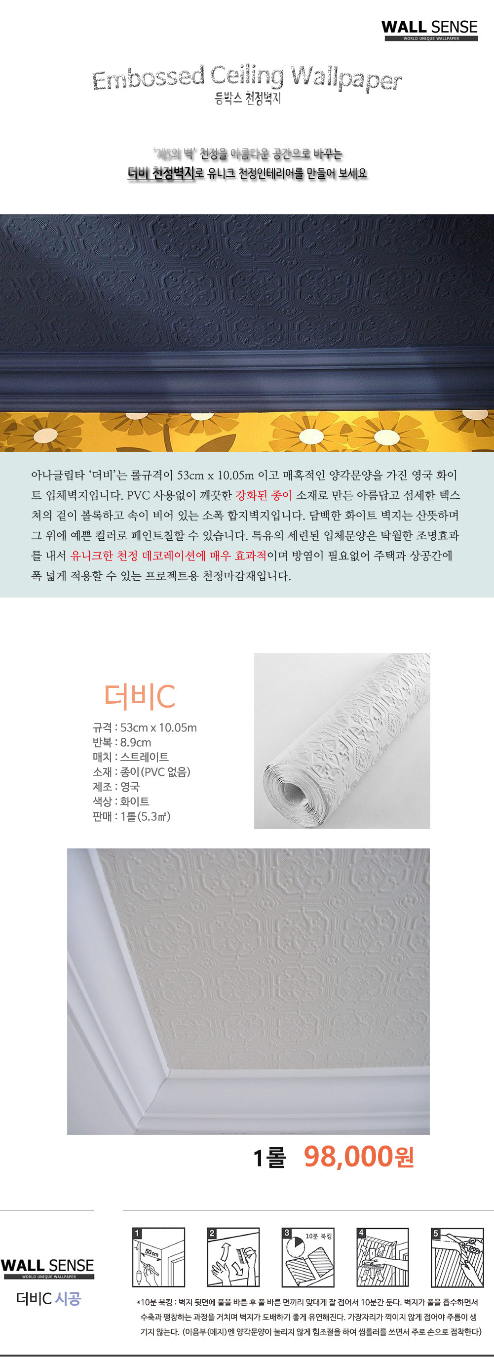 일반벽지와 달리 벽지 뒷면에 종이백킹이 없는 요철형 입체벽지입니다.