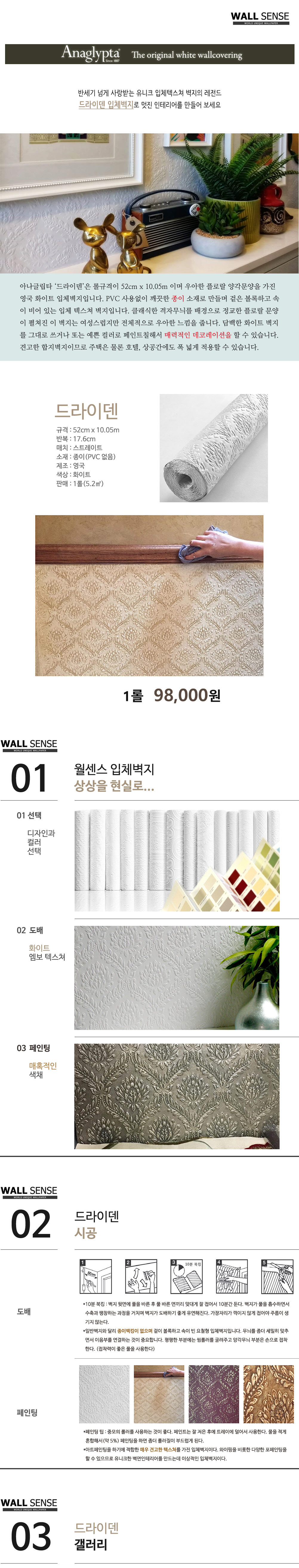 종이 소재의 합지벽지이며 일반벽지와 달리 벽지 뒷면에 종이백킹이 없는 요철형 입체벽지입니다.